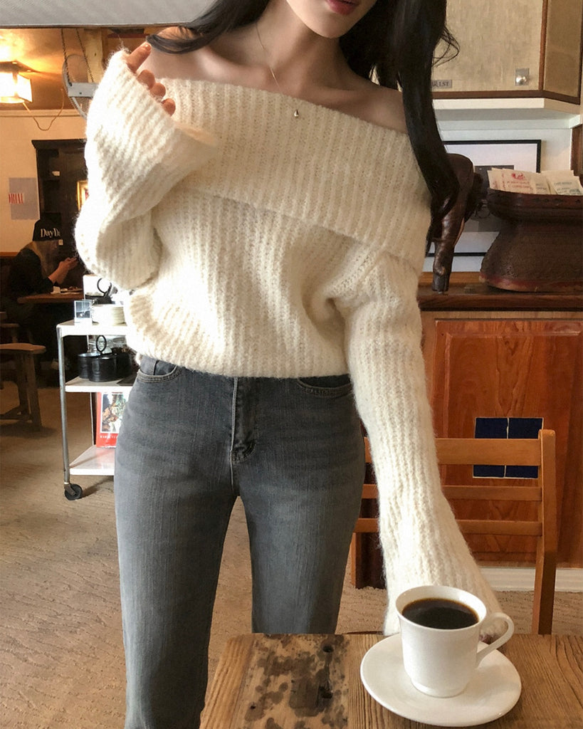 [🍂F/W] Rose Soft Off-Shoulder Sweater