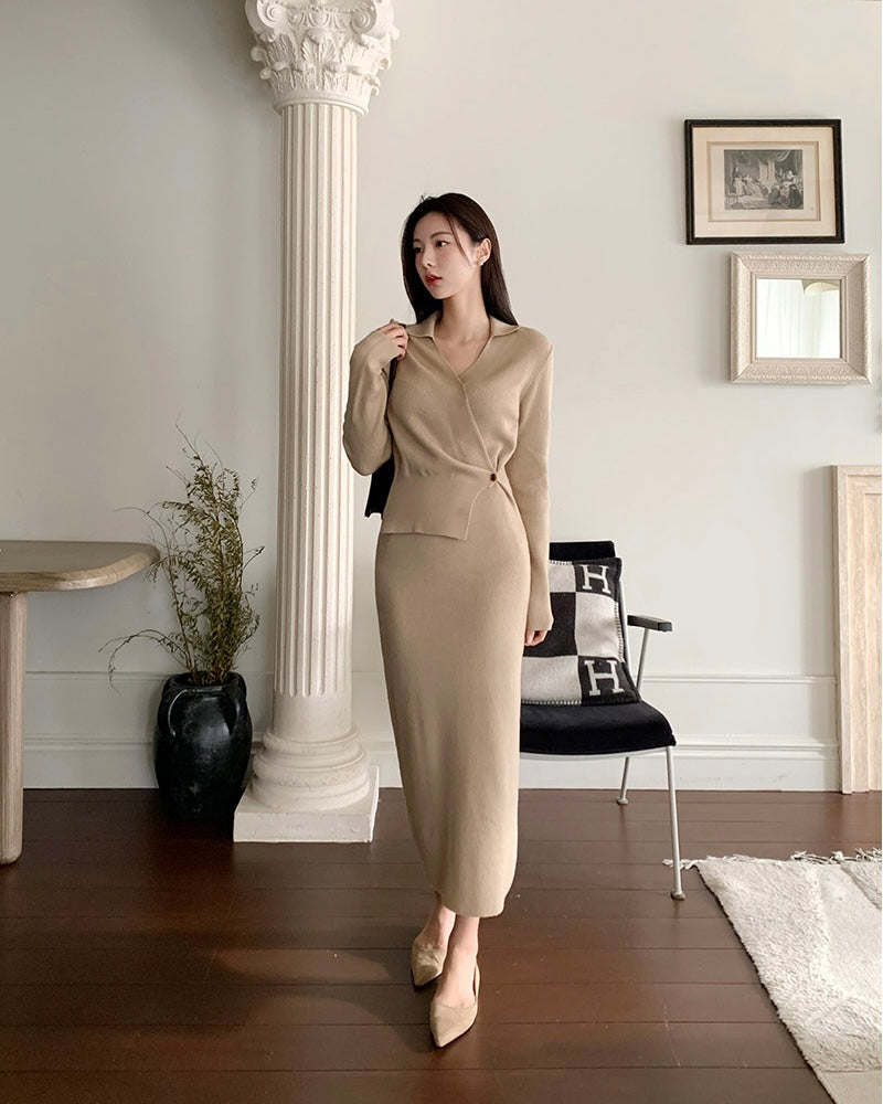 [🍂F/W] Zipper Knit Set Top + Skirt