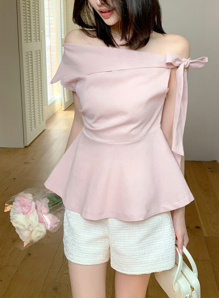 [🌷S/S] Off-Shoulder Bow Flared Blouse